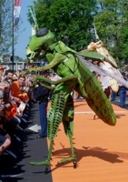 Heart of Diamond Weird and wonderful stilt creatures Heart of Diamond makes beautiful stilt creatures, true to life and handmade, accurate to the tiniest detail. The Grasshoppers, Butterflies, Spiders and Dragonflies walk around, crawl along and flap about on the streets, in squares and in parks, and they do not hesitate to enter a theatre or hall. The Queen of the Sea and her unique floating bubbles is definitely a sight for sore eyes. Manga is a creation inspired by the well-known Japanese comics. The stilt ladies walk, dance and flirt all over the place. Other acts: Glamour Ladies, Kerstmissen, Warrior Babes, Fleur, Lady Sea Anemone.