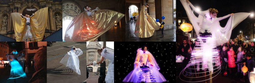 Our light family has grown. Just now she has arrived on earth: the Child of Light (COL), our light princess from outer space. She is accompanied by her faithful Guide of Light (GOL). Together they are a high-tech LED Walkact, a living light artwork and they bring us earthlings joy and boundless astonishment.